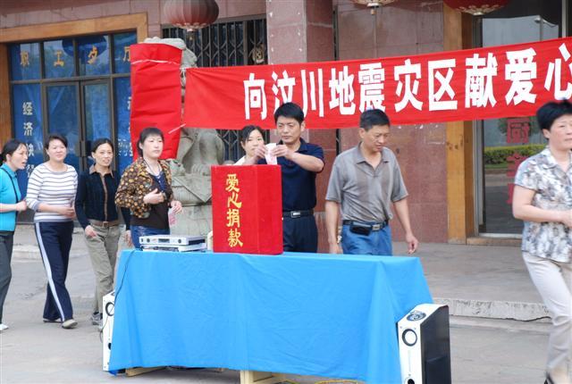 5月15日上午8點半,湖北地建黃石基地管理處剛把捐款箱擺上,就有很多的人排隊向箱內投幣,他們當中有管理處的在崗職工,有退休、退養人員,還有家屬和社區居民,一些過路的行人看到這個動人場面,也情不自禁把錢捐入箱中,僅僅2個小時,基地管理處就賑濟到了1萬多元。