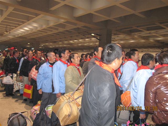 3月1日23時20分,第二批湖北地建集團駐利比亞項目工程人員共106名,乘坐北京-武漢的D121次列車安全抵達武漢,地建集團總經理程立文、黨委書記吳國才等到車站迎接。按撤離預案,撤離回國的人員的先后順序為女同志、勞務人員、管理人員,項目部管理骨干和黨員最后撤離,這次撤離的主要是勞務人員。