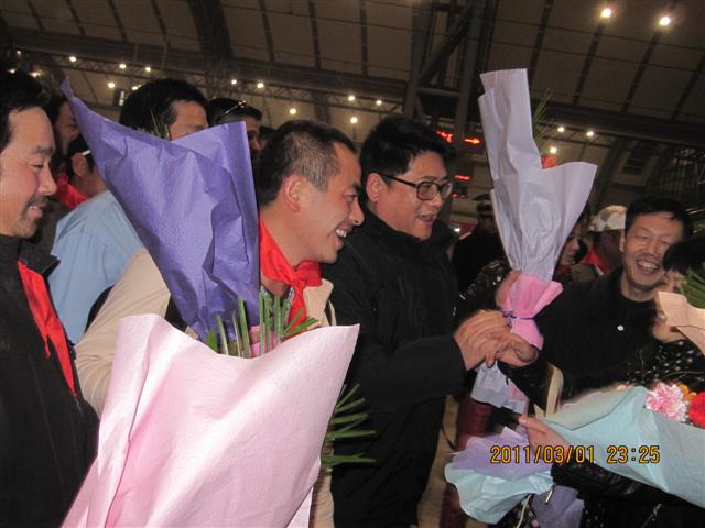 列車準時進站,106名佩戴紅領巾的勞務人員平安抵達,歡迎人員敬獻了鮮花,地建集團領導向他們詳細詢問了撤離情況,對員工的安全歸來表示熱烈的歡迎,并一一握手問候。長江日報、楚天都市報、湖北經視直播、我愛武漢等新聞媒體也早早的來到了現場,用相機、攝影機記錄下了這一動人的場景,并在第一時間報道,工人朋友對在場的領導表示最誠摯的感謝,并齊聲高呼“感謝祖國,祖國萬歲”。