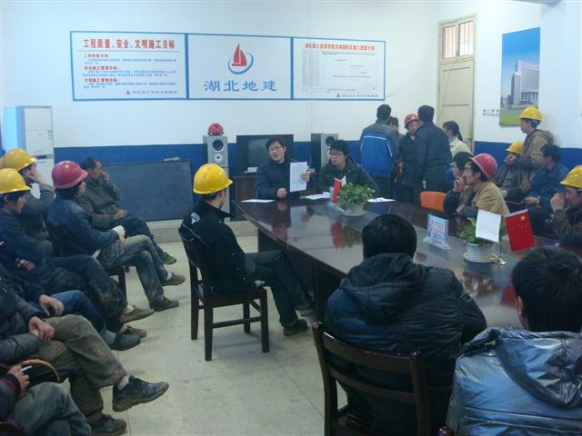 2011年3月份,湖北國土資源職業學院漢南項目開工在建的11個單項工程大量作業人員進場,為確保工程質量和工程進度,該項目改進安全管理模式,廣泛開展安全教育,強化安全管理過程,嚴懲安全違章。項目經理李彥同志和項目管理人員多次深入施工現場,召集班組長、分包負責人、工人等進行現場安全教育,公告危險源,確保工程的順利進行和工程安全目標的實現。