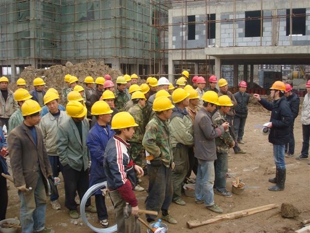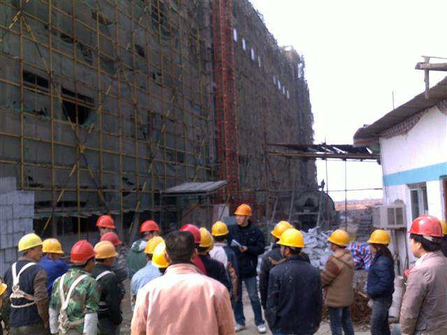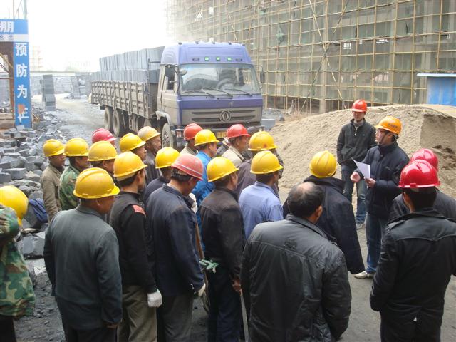 3月5日,實驗樓、食堂施工班組安全教育現場