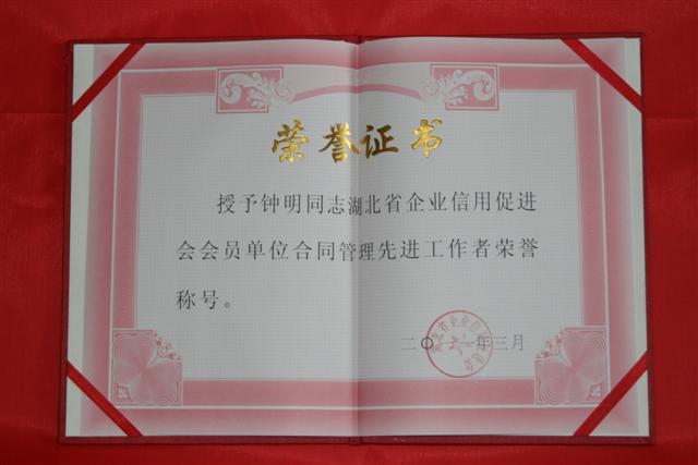 近日,湖北省工商局、省企業信用促進會在武昌洪廣大酒店聯合舉辦2011年度湖北省企業信用促進理事會。武基公司作為企業會員單位參加了會議,公司總工程師鐘明被評為“湖北省企業信用促進會會員單位合同管理先進工作者”榮譽稱號。