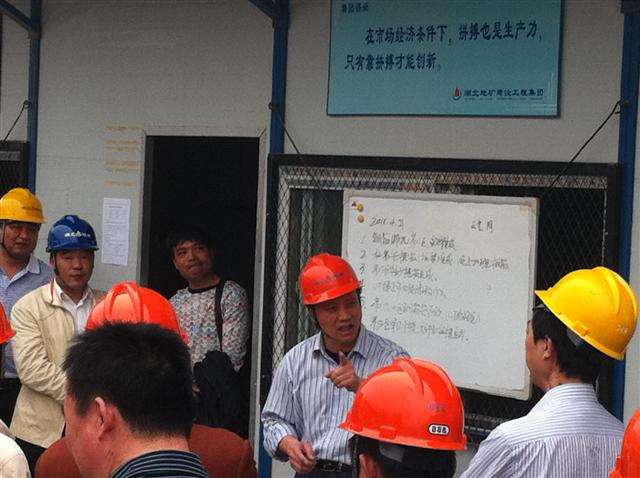 2011年4月21日下午,省地礦局工程地質處副處長周興和帶領“局安全管理資格培訓班”全體學員到地建承包公司鼎盛華城項目部實地觀摩學習。