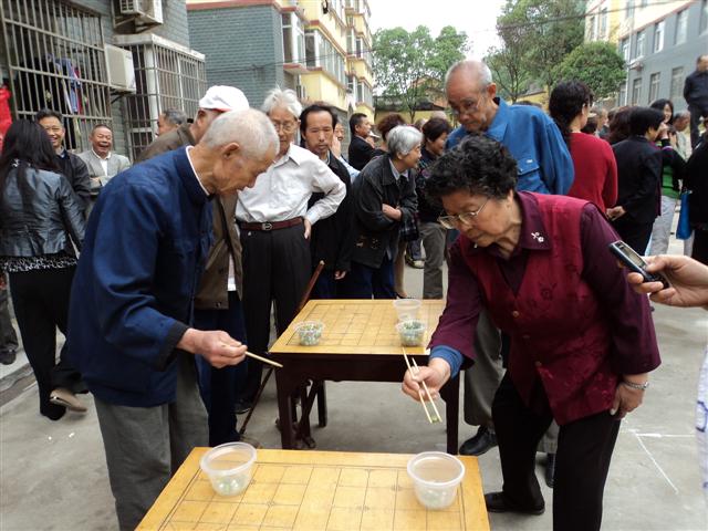 此次趣味運動會共設有“雙扣”、象棋、模擬保齡球、擲飛鏢、夾玻璃球、托球跑、套圈等7個項目,來自3個小區的400余名離退休(退養)老職工參加了各個項目的角逐。